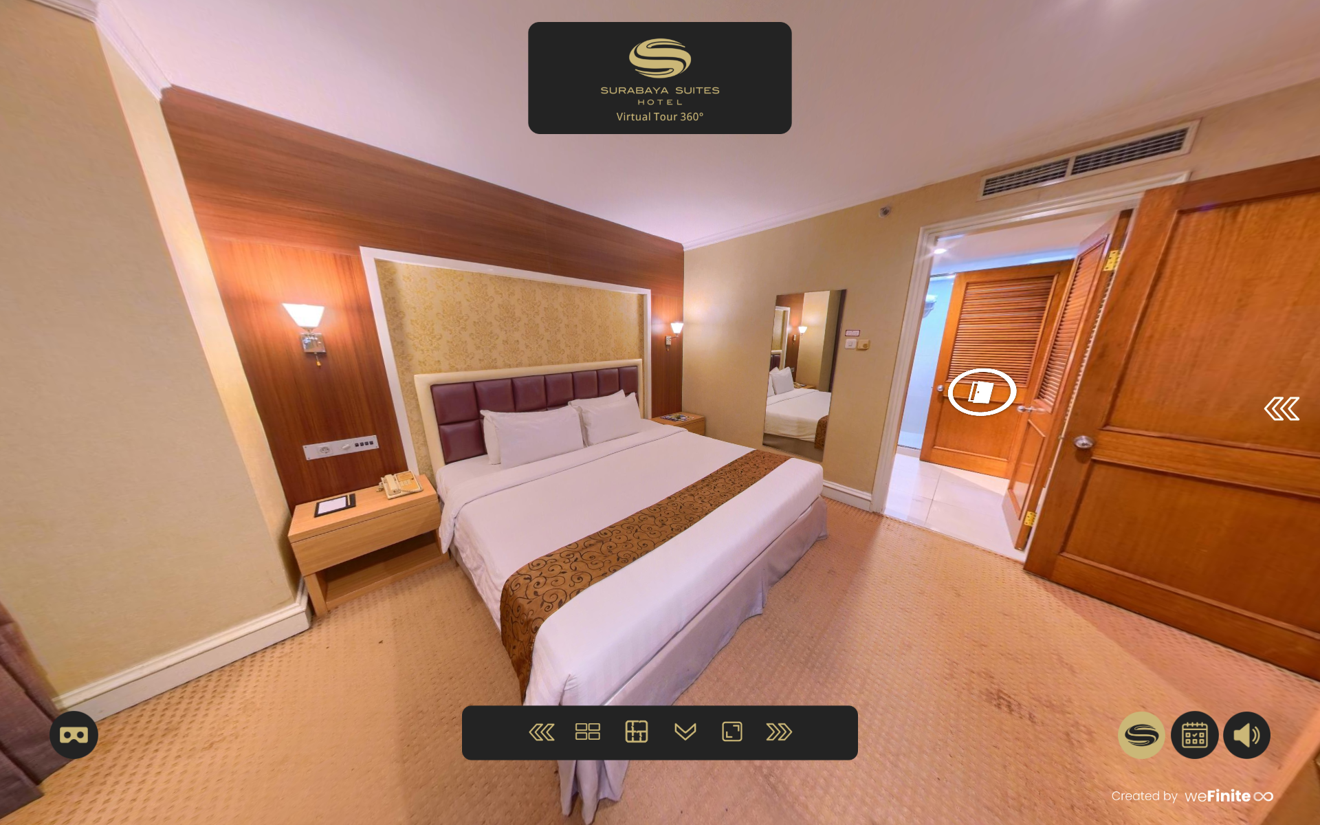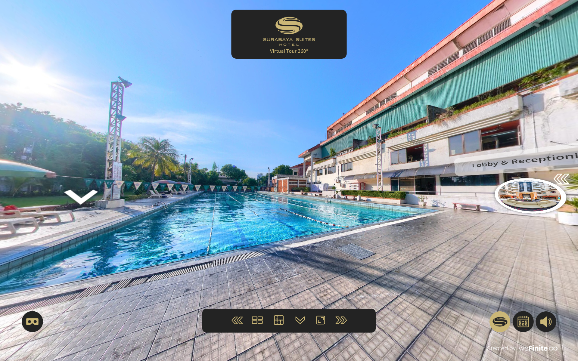To enhance clarity and guest engagement, weFinite developed a Virtual Hotel Tour 360° that allows users to explore room categories and key facilities digitally, including the hotel’s swimming pool area as a tranquil urban retreat.